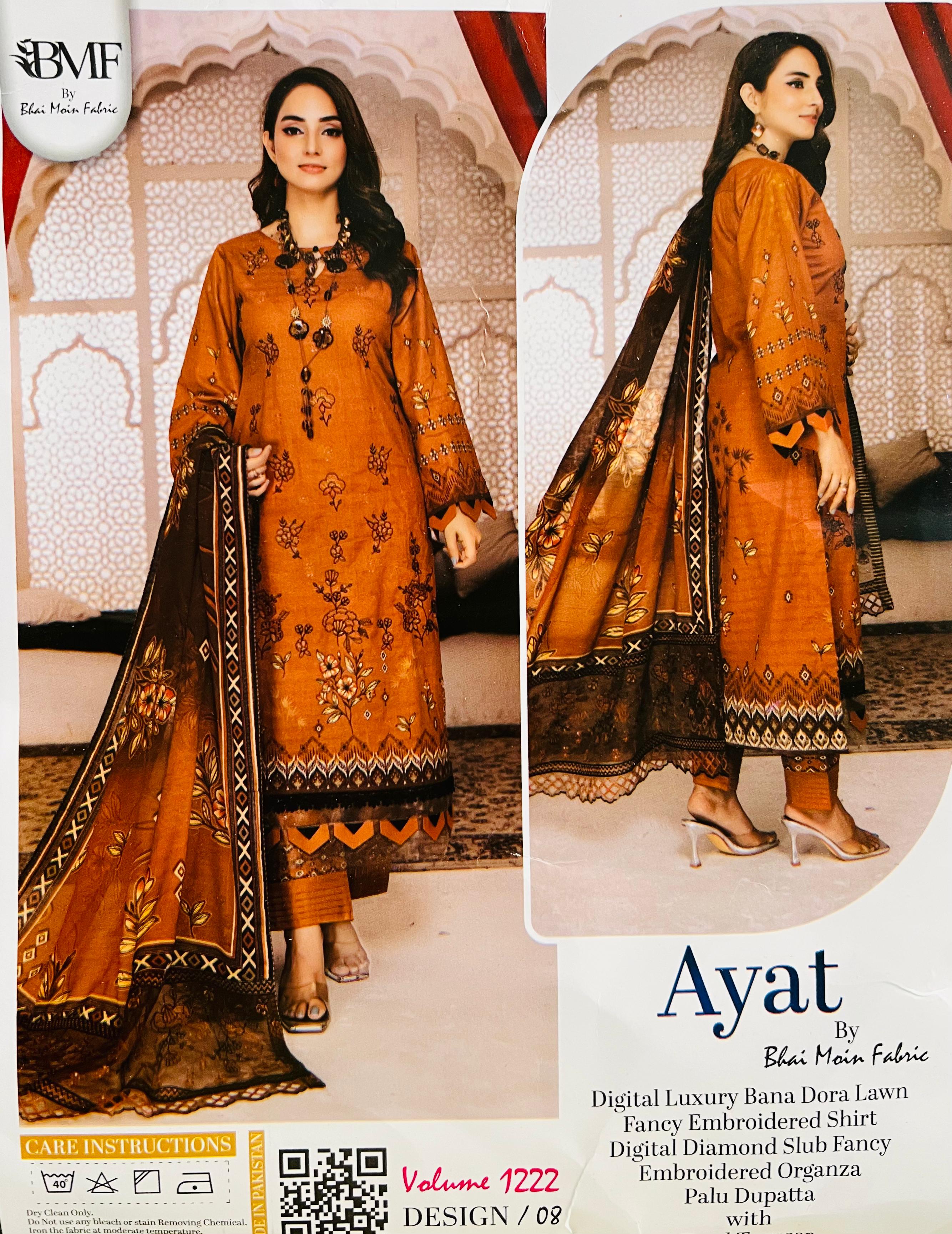 Digital Luxury Bana Dora LawnFancy Embroided ShirtDigital Diamond Slub Fancy Embroidered Organza Palu DupattaDyed Trouser
