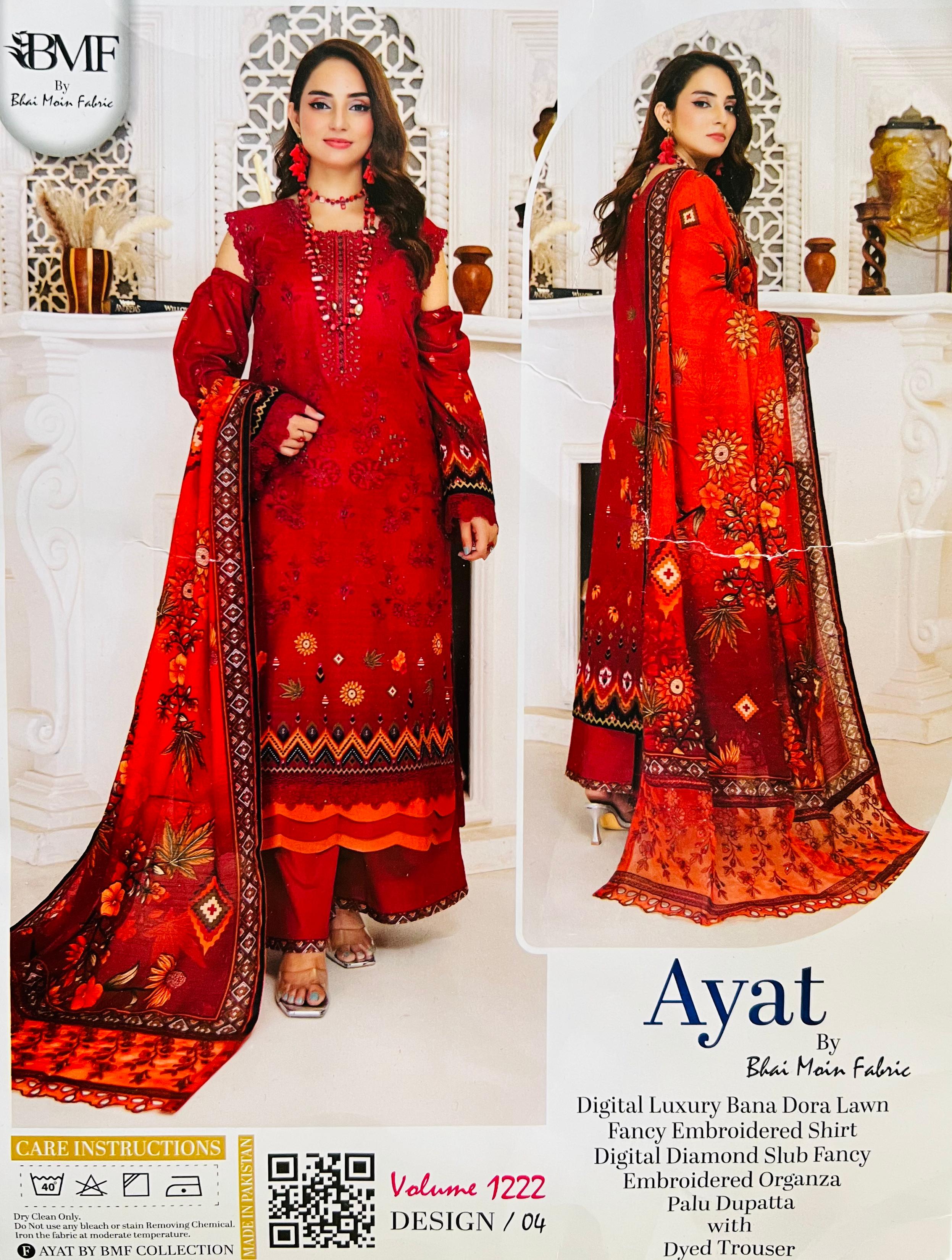 Digital Luxury Bana Dora LawnFancy Embroided ShirtDigital Diamond Slub Fancy Embroidered Organza Palu DupattaDyed Trouser