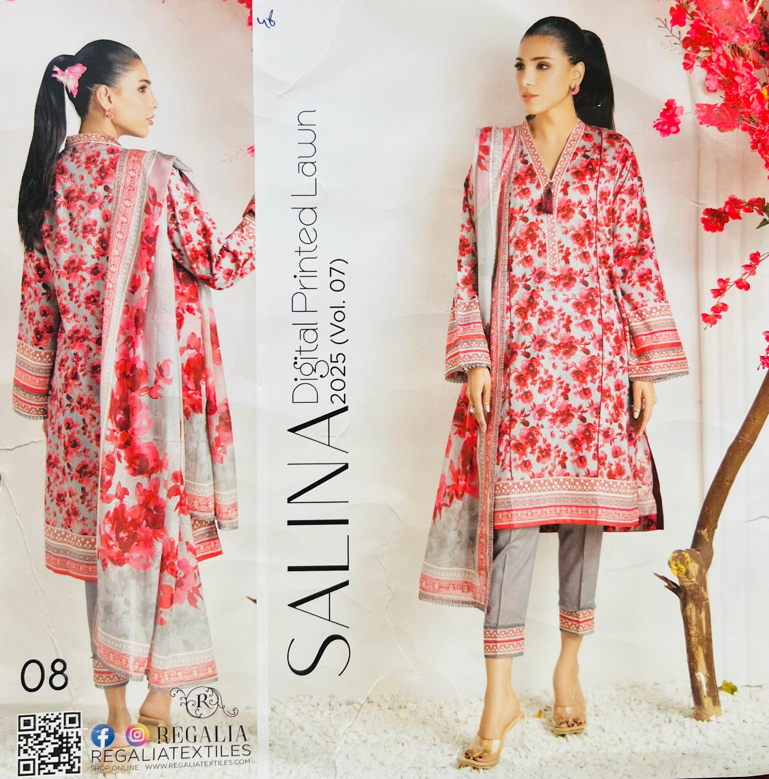 Digital Printed Lawn Shirt  Digital Printed Lawn Dupatta  Dved Cambric Trouser