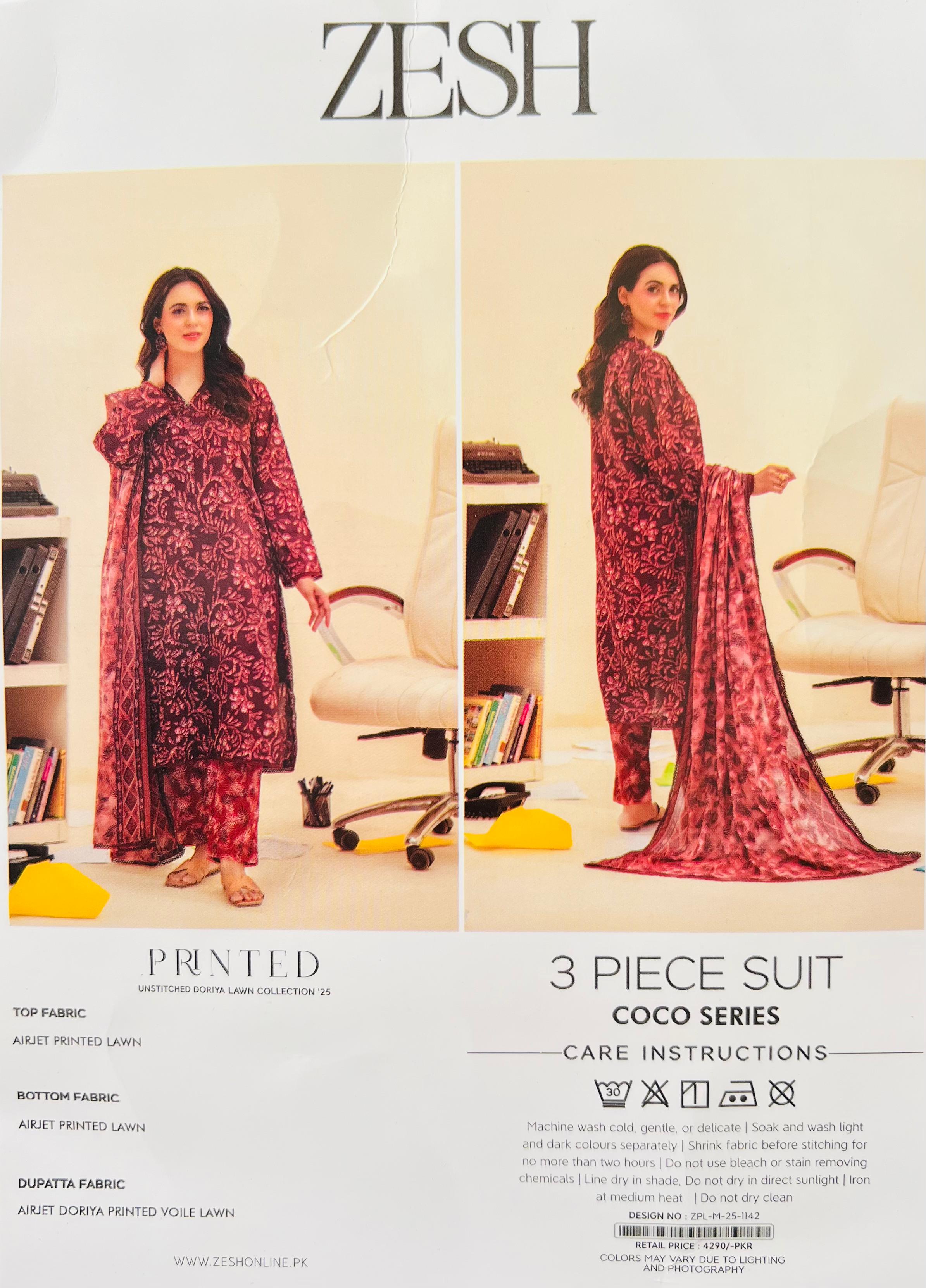 Zesh Brand 3 Piece Coco Series – Airjet Printed Lawn